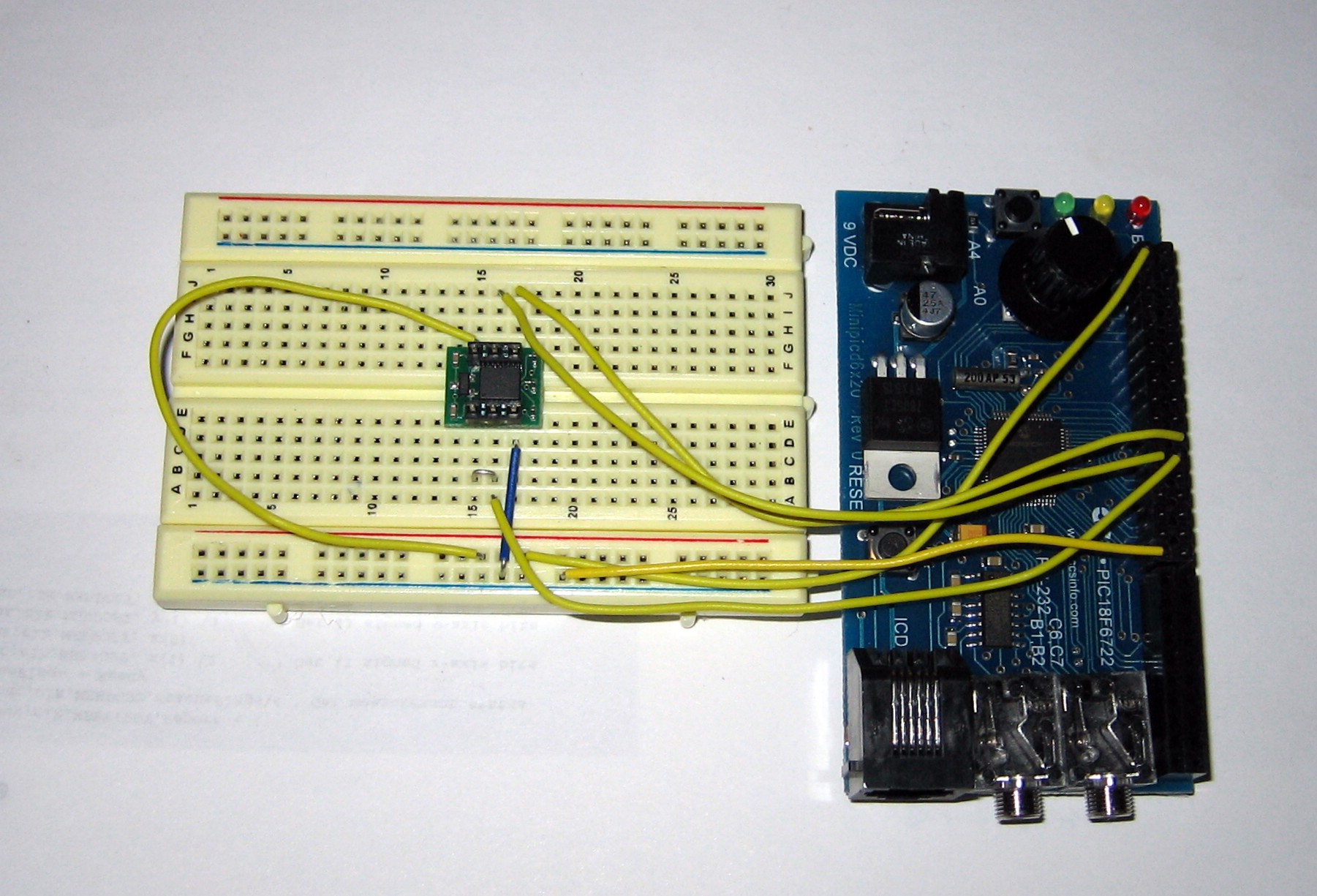 Overall the Hitachi HM55B compass module works great. Interfacing the compass with my microcontroller was simple, but writing the compass driver took a lot longer than I thought it would. Parallax has an example program for the Basic Stamp microprocessor, but since I'm using the PIC CCS C compiler I needed to get it running on my platform. I originally thought I'd just port over their Basic Stamp software, but there were significant differences in how the languages worked and the capacities they exposed so I ended up writing my own software. My software calibrates the compass to north and then displays the angle in degrees from north you are currently pointing. The calibration could be improved on to get more accurate results but in its current state the accuracy of the compass is good enough for me.